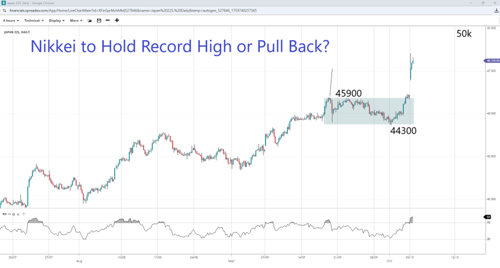 On Saturday, the leading Japanese party, the LDP, elected hard-line ultra-conservative , replacing Shigeru Ishiba. She's the former Minister for Economic Security and is known to have a particularly dovish stance on monetary policy. Markets are expecting that her premiership will put a rate hike by the BOJ this year into doubt, and she campaigned on promises to increase government spending. The increased spending, along with lower interest rates, is widely expected to prop up the stock market, explaining the recent surge in the benchmark Nikkei 225 and the underperformance of the yen. It will be a few days until she's formally installed in the office and makes her government priorities known.