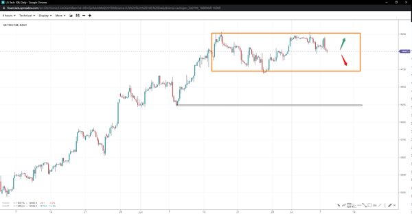 US TECH formed a double top at 15290 and reversed to the 15k handle, where bulls defend the line. Losing the base might open the door to 14700, offering a chance for a double bottom. Additional bets could see the index decelerate to 14250 unless bulls have a go at 15500.