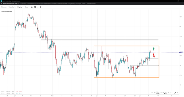 WTI may be heading towards the 75/bbl top before seeing substantial rejection, as long as the bulls defend the 72.75/bbl swing. Falling lower might see gain reversed to 67/oz in case 71.90/oz and 70/bbl ease. On the flip side, a decisive breakout might see prices reach as high as 76.70/bbl.