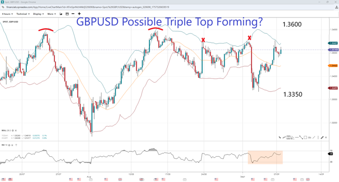 The GBPUSD had started the week in the green amid a weaker dollar after the US NFP disappointed last Friday. Despite RSI being above 50 on the 4-hour, suggesting upward momentum, the pair could face near-term resistance, having bounced off 1.3550 three times in the last couple of weeks. If it manages to break above, it could face the 1.3600 psychological handle, which has provided resistance since early July. On the flip side, support below the median Bollinger Band of 1.3446 can be found at the near-term swing low of 1.3420. A break below could head towards the lower BB, coinciding with the month's low at 1.3350.