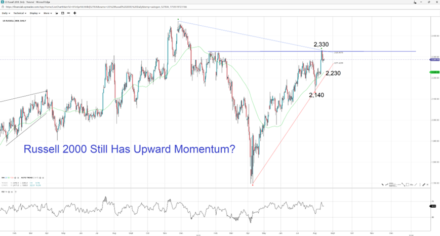 • Russell 2000 is arguably the most sensitive to monetary policy changes, and rising expectations of a rate cut have helped it soar 8% this month.