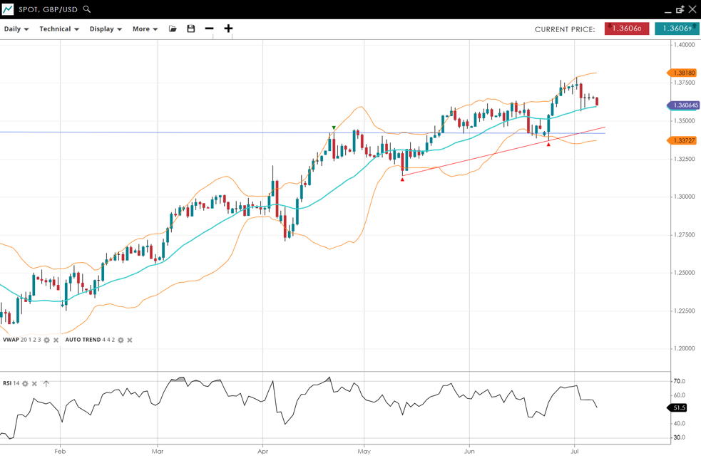 NOTE: These charts use the ‘Pro Trading Tools’ available on the SpreadEx trading platform. To use them, log in to your and click ‘Technical’ from the menu on any chart.