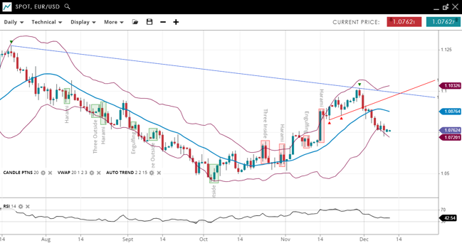 - Support/Resistance: Support at 1.0720, resistance at 1.0876.