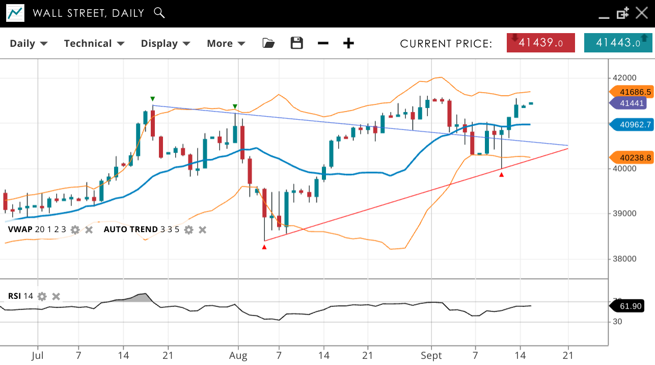 | Wall Street | Bullish | Impulsive | 41441 | 40962 | 40238 | 41686 | 61 |