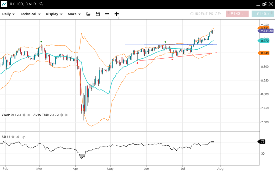 | UK 100 | Bullish | Impulsive | 9,145 | 8,970 | 8,748 | 9,191 | 73 |