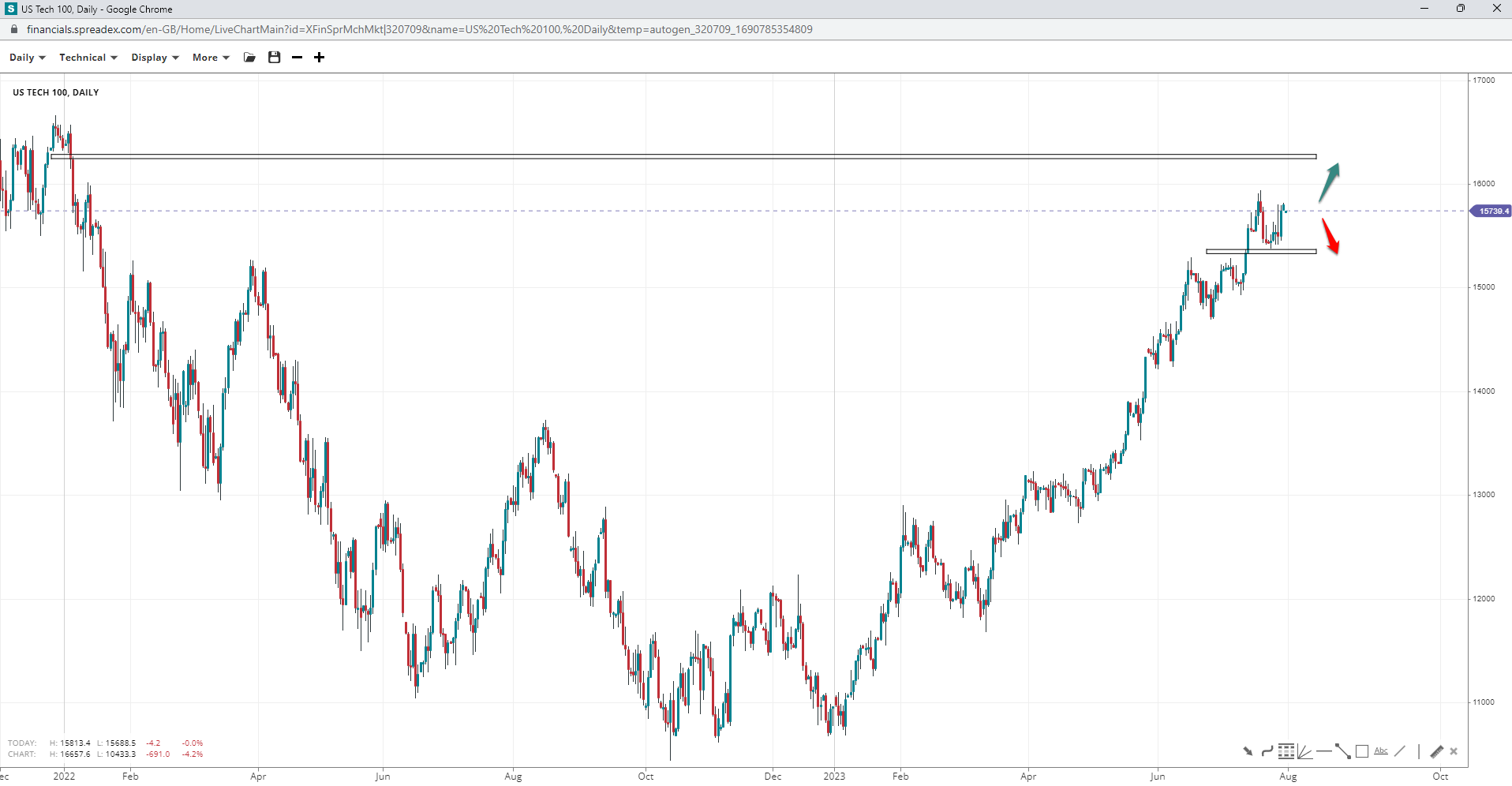 US Tech bulls failed to reclaim 16k, but remaining above 15375 keeps the chances of a takeover high. Soaring higher will expose 16250, while a slide might open up 15k.