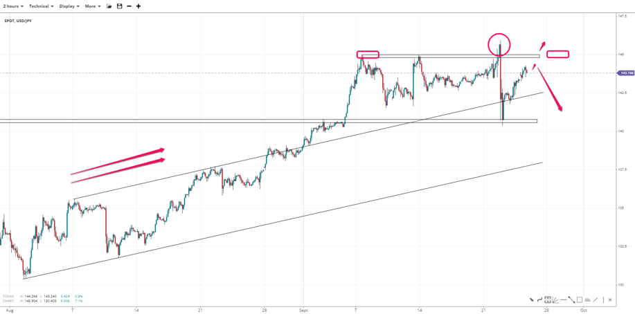 USD/JPY plunged at 140.50 after failing to move past 146.00 but reached a fresh high before reversing. The ascending channel top weakened, but bulls quickly bought the dip, with prices heading back to the top. 142.50 is now diagonal channel support with a range likely to form whether 145.00 holds or not. If it does, we might see an H&S formation taking place.