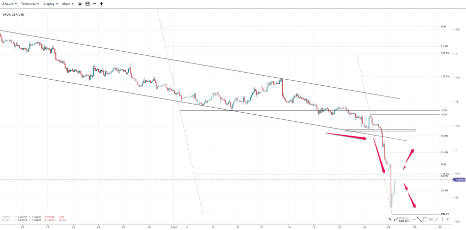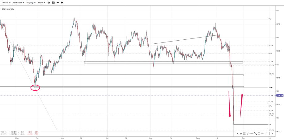 GBP/USD flash-crashed to the 161.8% Fibonacci of 1.3145-1.1400 at 1.0330 and recovered back to 1.0750; the resistance at 138.2% of the same leg. Highly volatile, a break above might open the door to 1.1000, whereas on the flip side, 1.0570 lies above the record low. 1.0850 is the 50% Fibonacci of the 1.1365-1.0330 leg and is likely to determine short-term sentiment.